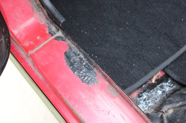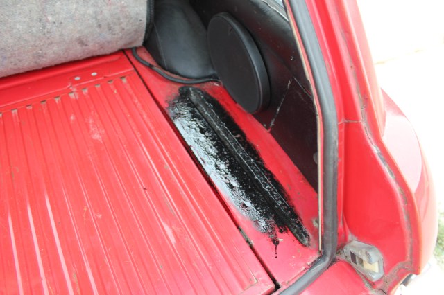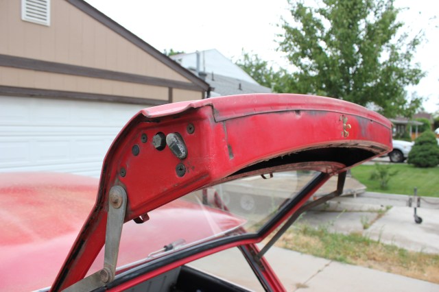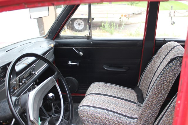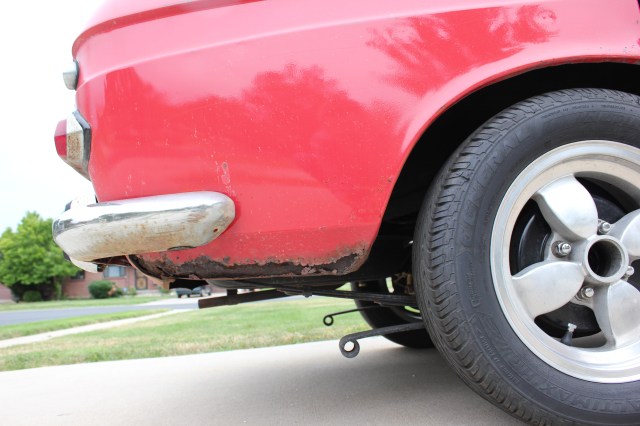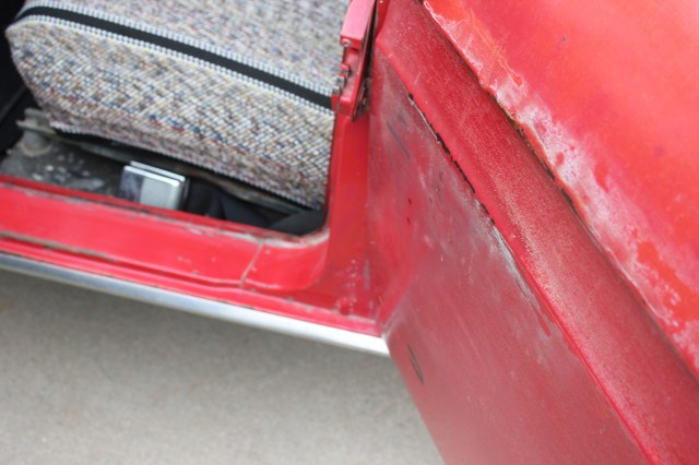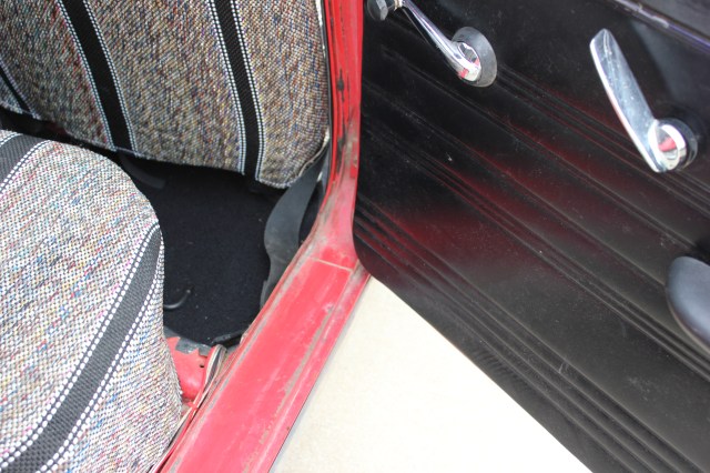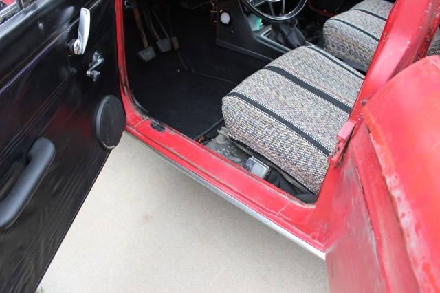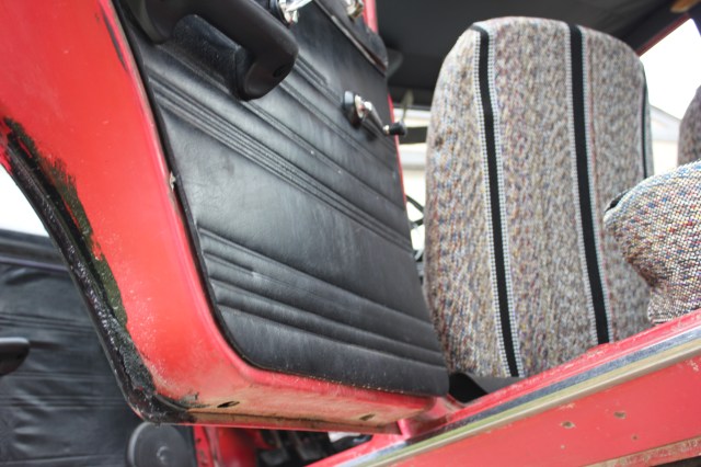 Some negatives: the condition of the paint, obviously, the rust in the lower rear quarters, damaged or missing door seals (the hatch has a new seal), doesn’t like to start when it’s cold. With the 4 speed, top speed is really only about 55 mph. A 5 speed or a roadster rear diff would help with highway speeds.