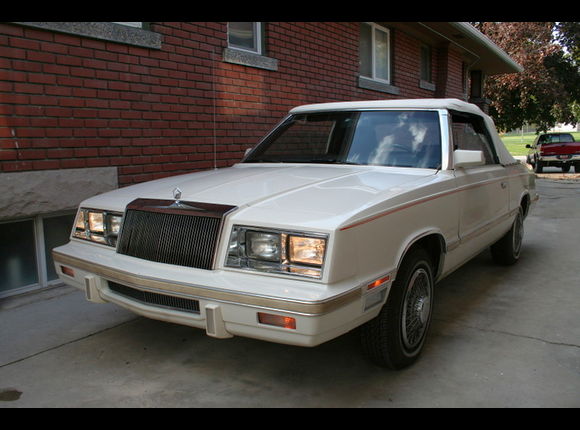 Once you are inside, it’s like Disneyland. You’ve got maroon vinyl, orangy-brown leather (maybe vinyl), faux wood grain dash, power windows, stock stereo (also retro-cool), and a center console. The seller claims it also has a new top. Please, please tell me it talks. Some LeBarons had the voice admonition function to let you know important safety tips like the door is ajar, the car might put you to sleep, etc…