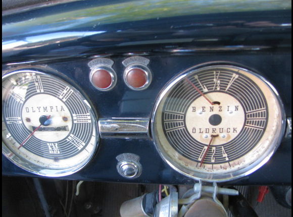 Other than its small dimensions and the German language instrument panel, its styling could easily pass as ’40s American. It has plenty of chrome, bucket seats, and a continental-style spare tire mount. Its true heritage is betrayed, however, by the 1.5 liter engine, the tiny size, and the very cool semaphore turn signals.