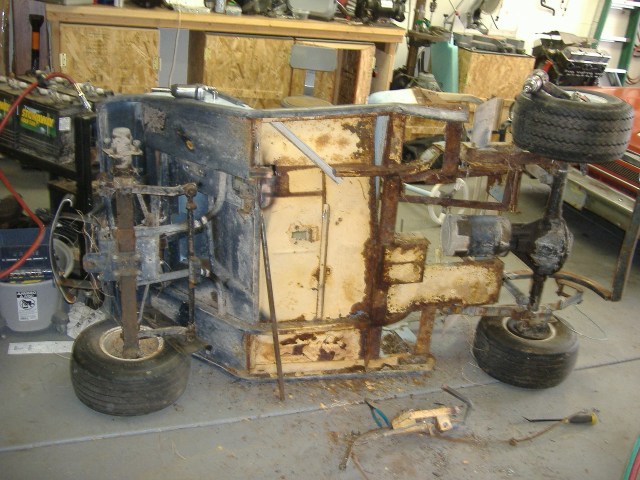 Not knowing what would prove useful, we removed everything we could. The front suspension/steering was stubborn, but we were able to win out with the help of a sawzall and a torch.