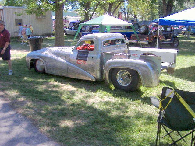 I saw this custom truck at a local car show two years ago. It has had some amazing metal work done to it. It appears to be loosely based on a 1956 Ford. All I could think of was that it should be named Quagmire.