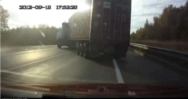 Sometimes it’s just not your day. Conversely, some days really, really are your day. This Russian truck driver casually displays the latter by unexpectedly stepping out of his truck.