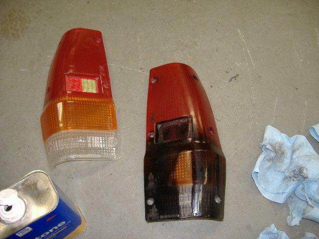 In the nooks and crannies, an old toothbrush was used to get out the last bits of paint. The photo above shows how the acetone left the plastic with an unsightly haze. The last steps were to wash the lenses in soap and water and then polish them with 3M Dark Glaze.