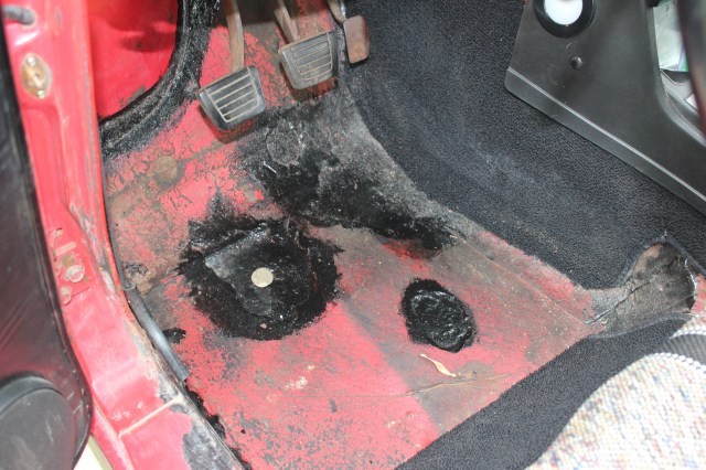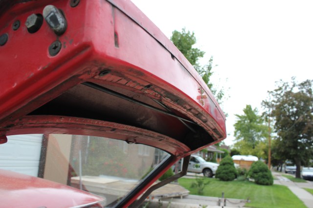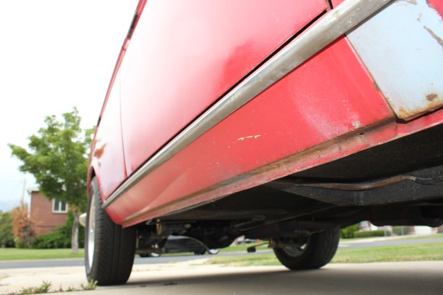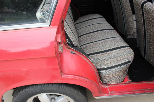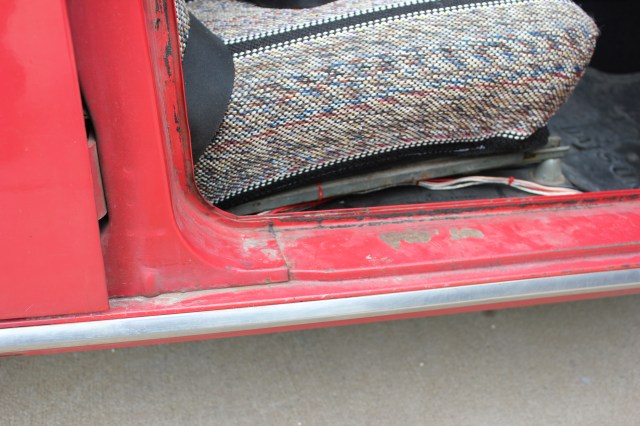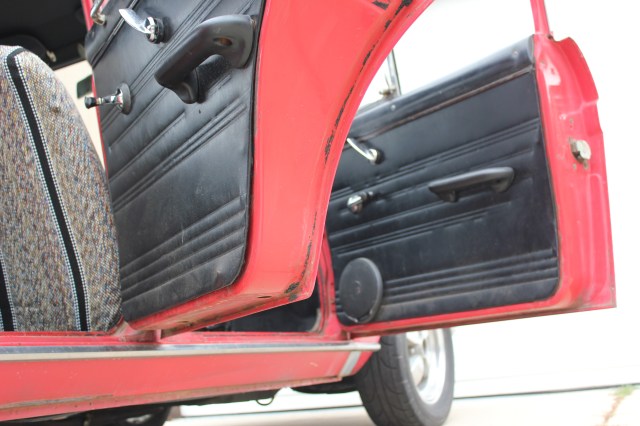 Some negatives: the condition of the paint, obviously, the rust in the lower rear quarters, damaged or missing door seals (the hatch has a new seal), doesn’t like to start when it’s cold. With the 4 speed, top speed is really only about 55 mph. A 5 speed or a roadster rear diff would help with highway speeds.